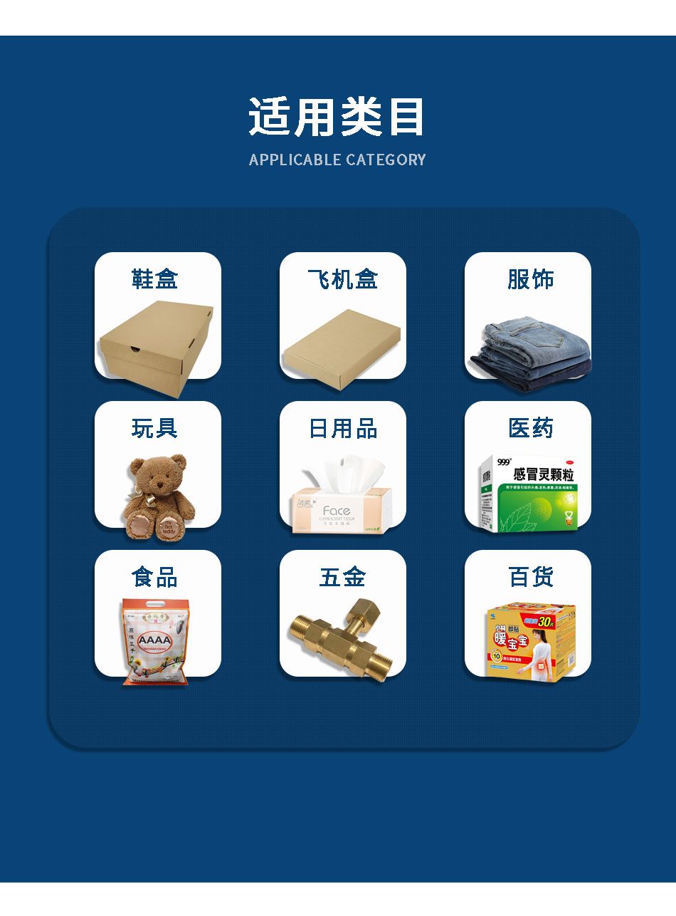 打包貼單速度 | 18-25件/分以上,1小時1500單以上(根據(jù)產(chǎn)品大小有關(guān)) |